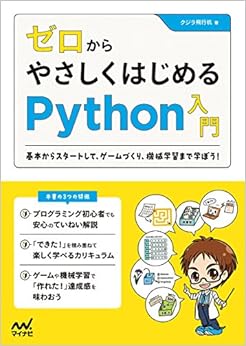 - タイトル: ゼロからやさしくはじめるPython入門 ~基本からスタートして、ゲームづくり、機械学習まで楽しく学ぼう! ~ (日本語) 単行本(ソフトカバー) – 2018/1/30 de クジラ飛行机